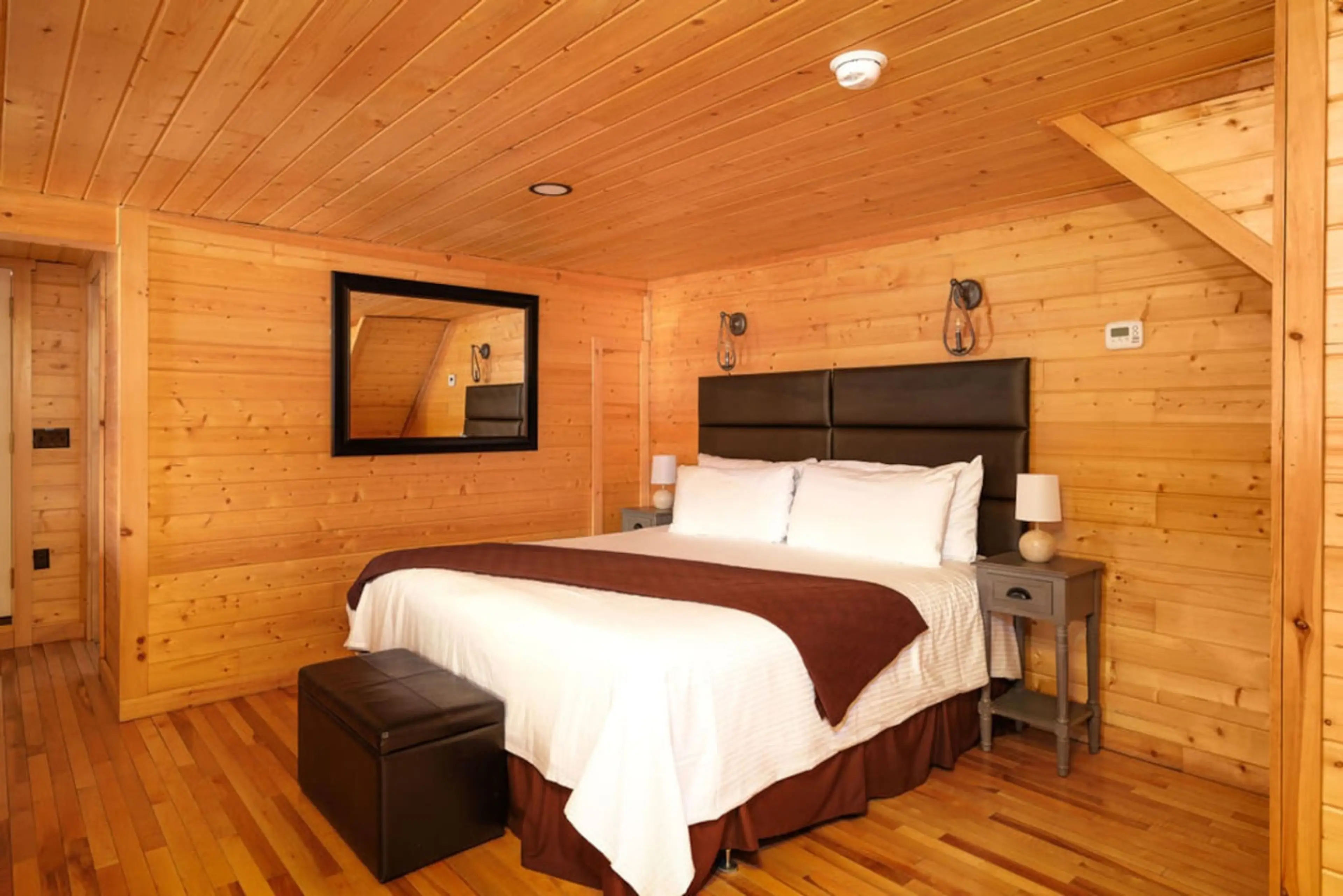 The Chestnut Premier is designed for two adults, offering a unique two-level layout for ultimate comfort. On the lower level, you’ll find a serene bedroom with a king-sized bed and a full bathroom, complete with a relaxing bathtub. The upper level features a cozy living area with a pullout sofa, per...